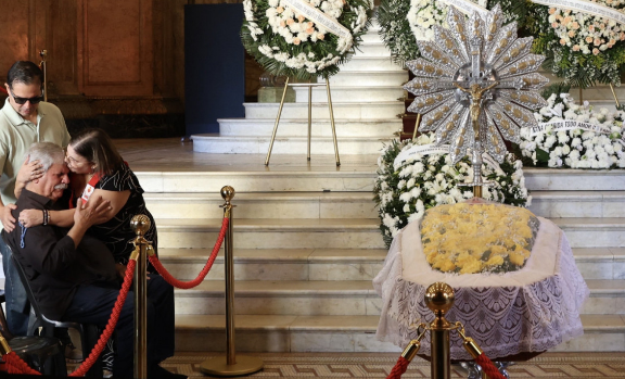 O corpo da cantora Nana Caymmi foi velado na manhã desta sexta-feira (2), no Theatro Municipal do Rio, no Centro. A cerimônia ocorreu entre 8h30 e 12h30 e reuniu familiares e amigos da artista, que morreu aos 84 anos, na nesta quinta-feira (1º), em decorrência de falência múltipla dos órgãos.