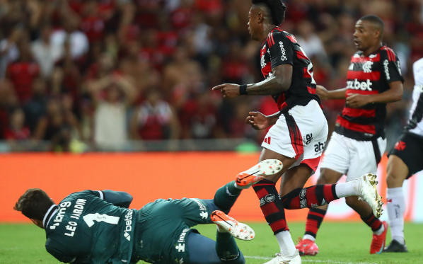 Por outro lado, o Flamengo tinha a vantagem e o controle do jogo. Nem mesmo a lesão de Bruno Henrique abateu a equipe. Luiz Araújo, que entrou em campo aos 17, fez o gol da virada aos 23. O atacante recebeu na entrada da área, fintou Hugo Moura e bateu da entrada da área para estufar as redes de Léo Jardim e decretar a vaga na decisão para a euforia da Nação no Maracanã.