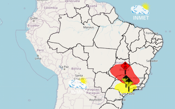 A capital São Paulo, que bateu recordes de calor nesta semana, não faz parte deste aviso, mas possui alerta também para chuvas intensas.