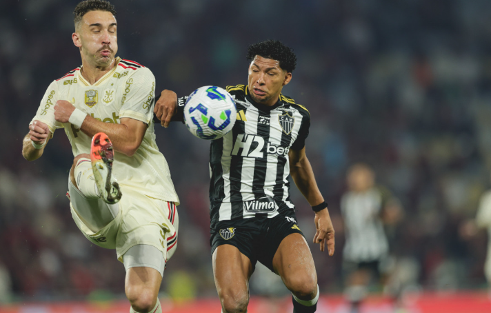 O primeiro tempo foi equilibrado. O Flamengo controlou a posse de bola e finalizou nove vezes, bem mais do que o Atlético-MG, que chutou apenas três, mas não conseguiu transformar o volume em oportunidades claras. A melhor chance do jogo saiu de finalização colocada de Evertton Araújo, que acertou o travessão.